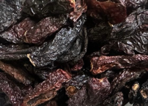 パスティージョは乾燥させたチラカ唐辛子で、レーズンやカカオを思わせる深い香りと、ほのかな苦味が特徴の唐辛子です。メキシコでは古くからソース文化とともに発展し、モーレ・ネグロ、チリソース、肉の煮込み料理などで重宝されてきました。辛味は中程度で、単体でもブレンドでも使いやすく、複雑な味わいを料理に与えます。近年では、チョコレートを使ったソースやスパイスドリンク、燻製料理などへの応用も進み、甘苦い風味を活かした使い方が評価されています。